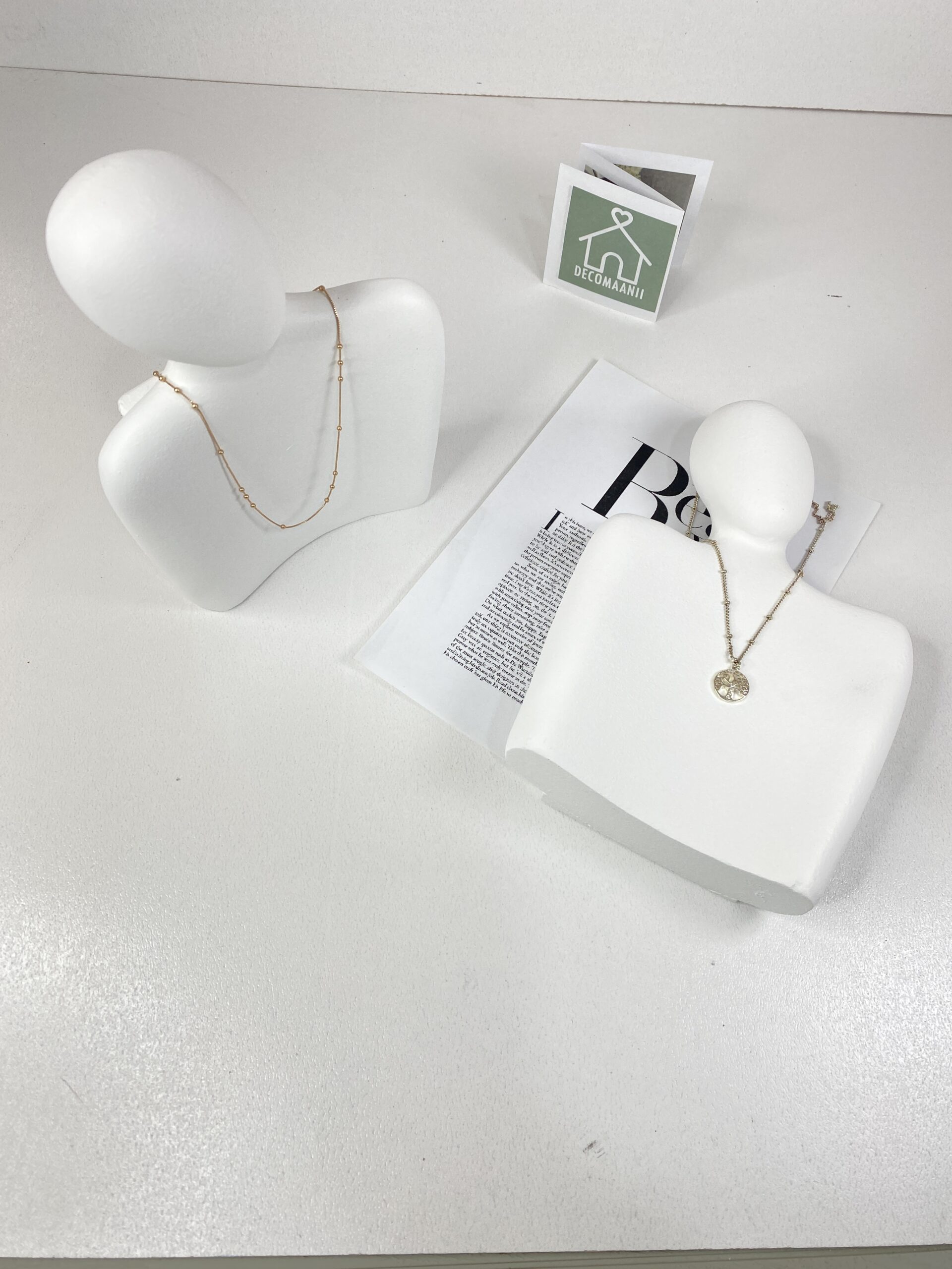 استند آغوش زوج دو پایهی حرفهای برای عکاسی و نمایش گردنبند، پلاک و آویز است که با طراحی مینیمال و رنگ سفید مات، تمرکز کامل تصویر را روی خود زیورآلات نگه میدارد. این استند برای پیجهای فروش طلا، بدلیجات و زیورآلات دستساز طراحی شده که خروجی تمیز و یکدست میخواهند.